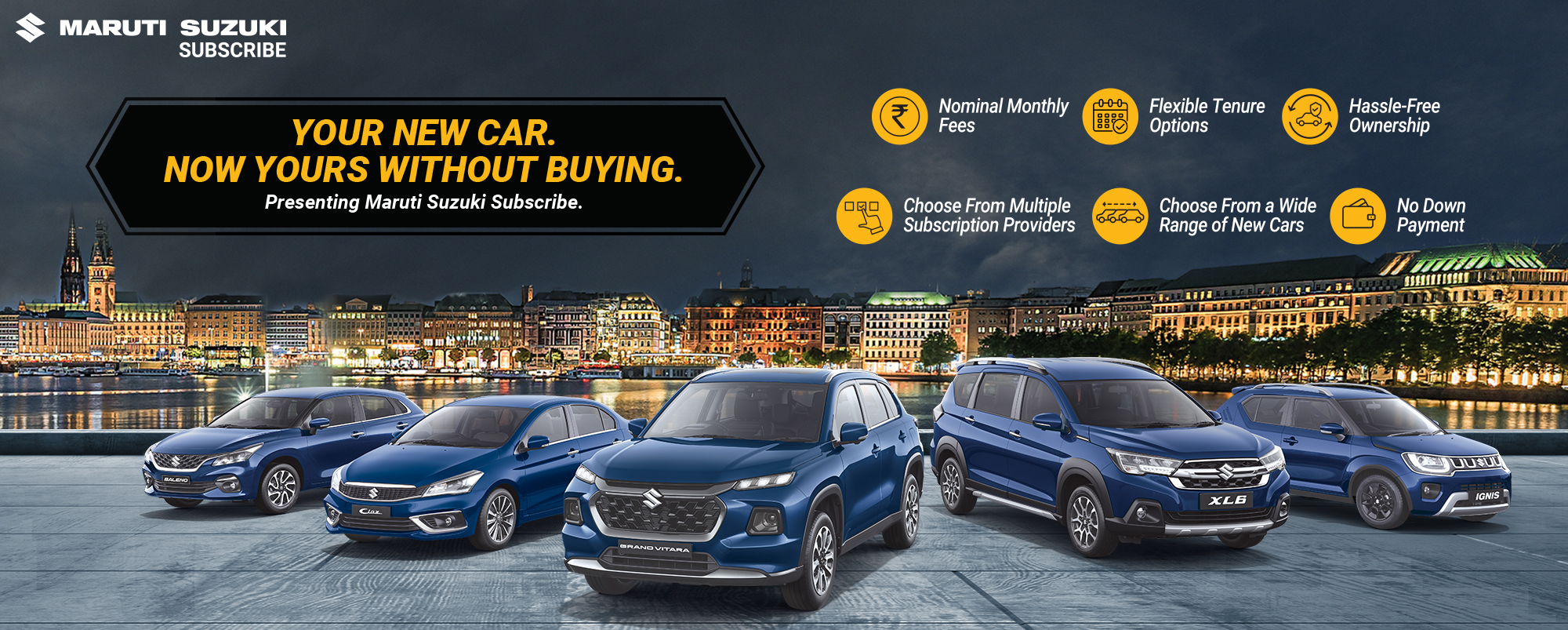 Maruti Suzuki Subscribe enables all customers to enjoy driving their preferred Maruti Suzuki cars without having to deal with all the financial responsibilities that come with owning a car.All you need to do is opt for a monthly subscription plan at a fixed monthly fee, which includes the routine maintenance and insurance costs, and choose a flexible tenure. At Poddar Car World in, Nexa of Jalpaiguri Central, Jalpaiguri, all Hatchback, Sedan, SUV, the MUV models line-up includes Baleno, Invicto, EVitara, Jimny, Ciaz, Ignis, Fronx, Grand Vitara, XL6. Here, you will enjoy Maruti Suzuki Subscribe benefits such as: